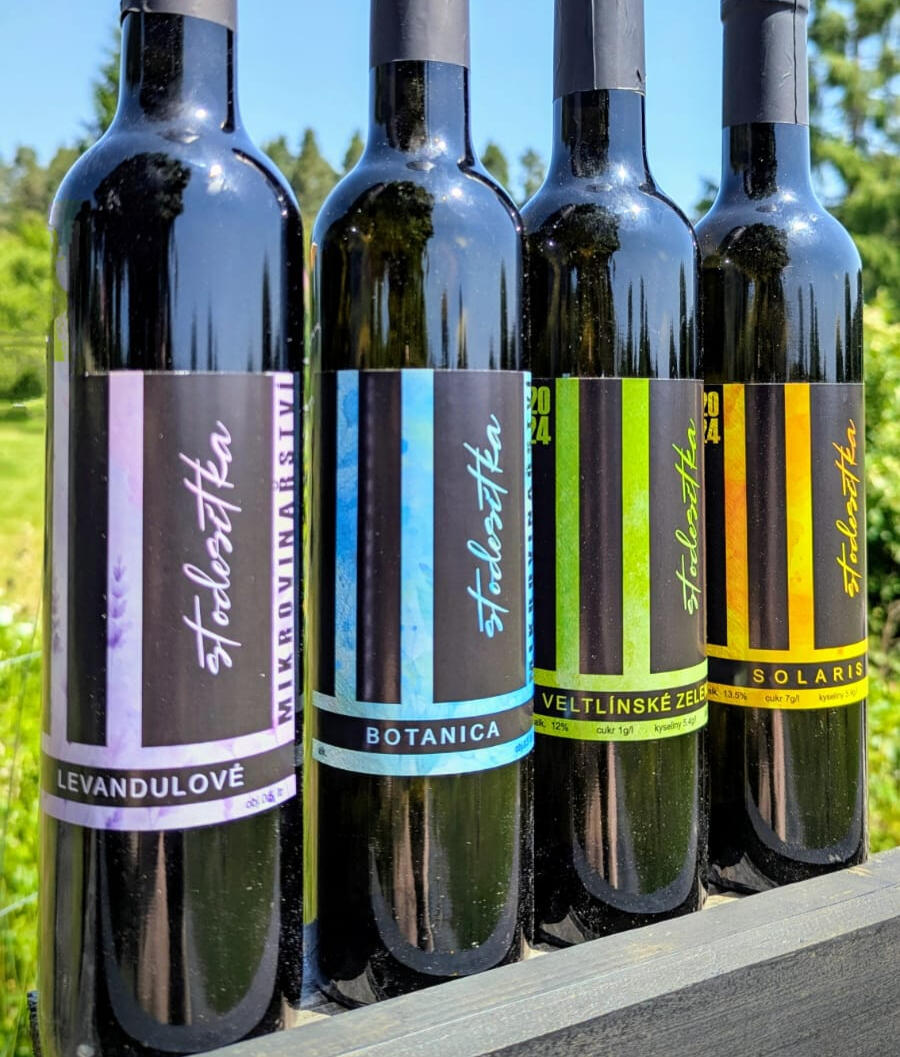 Na naší vinici pěstujeme výjimečnou odrůdu Solaris, z níž vyrábíme dva jedinečné typy vína: Solaris a Botanica. Díky místním podmínkám jsou obě naše vína suchá, což zvýrazňuje jejich charakter a chuťový profil. Solaris je klasické odrůdové bílé víno, které vyniká svou svěžestí a čistotou. Botanica je bílé víno z hroznů Solaris, obohacené o macerát pečlivě vybraných bylin a koření, z nichž většinu pěstujeme na naší zahradě. Tato vína ztělesňují harmonii přírody a našeho řemesla, přinášející do každé sklenky jedinečnou chuť naší země.